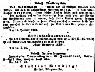 Zeitungsbericht aus dem „Wochenblatt für Wemding und Monheim nebst Umgebung“- 15.1.1920
