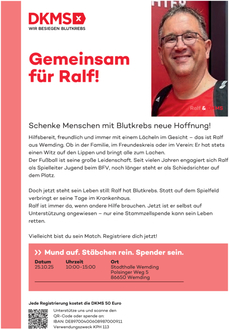 Zur Typisierungsaktion am 25.10.2025 von 10 – 15 Uhr in der Wemdinger Stadthalle sind Alle – auch Gäste – herzlich willkommen.