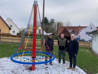 Für das Spielgerät hat die KLJB Otting eine Spende von 2.500 Euro durch den 1. Vorstand David Herzner an den Bürgermeister übergeben.
