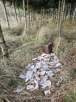 Leider wurde Bauschutt (Fliesen) im Wald abgeladen.