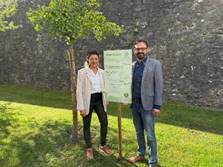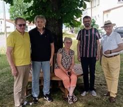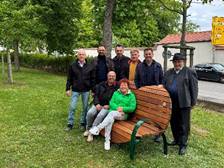 Der Verein Lebendiges Wemding stiftete eine Baumbank am Persönlichkeiten-Denkmal in der Bahnhofstraße.