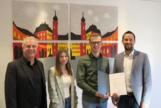 Im Bild von links: Geschäftsleiter Konrad Bonengel, Personalratsvorsitzende Michaela Simon-Mathes, Marius Drescher, 1. Bürgermeister Sebastian Hauck Bildnachweis: Angelika Jansen