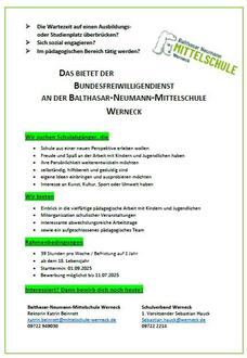 Der Bebauungsplan mit Begründung wird ab sofort nach § 10 Abs. 3 BauGB im Rathaus des Marktes Werneck, Balthasar-Neumann-Platz 8, 97440 Werneck, während der allgemeinen Dienststunden zu jedermanns Einsicht, bereitgehalten. Hier können der Bebauungsplan und die Begründung eingesehen werden. Über den Inhalt wird auf Verlangen Auskunft gegeben.