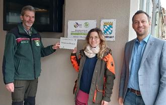 im Bild von links: Stephan Thierfelder, Bereichsleiter Forsten beim Amt für Ernährung, Landwirtschaft und Forsten Schweinfurt, Selina Schott, Försterin, Sebastian Hauck, 1. Bürgermeister