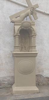 Bei der Restaurierung wurden u.a. die vorhandenen Risse geschlossen und Fehlstellen ergänzt sowie im Ganzen eine mineralische Lasur, mit auf den heimischen Sandstein abgestimmten Farben, aufgebracht. Die Gesamtkosten beliefen sich auf 5.926,20 EUR.