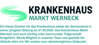 Das Krankenhaus Markt Werneck wird im Belegarztsystem betrieben und verfügt über die Fächer Chirurgie, Orthopädie, Gynäkologie und Innere Medizin. Bedingt durch die kompakte Bauweise und die übersichtliche Bettenzahl entsteht für die Patienten und Mitarbeiter ein familiärer Eindruck.