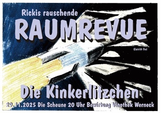 Am Samstag, 29.11.2025 um 20 Uhr zeigt das Theaterprojekt Kinkerlitzchen in der „Scheune Werneck“ das Stück „Rickis rauschende Raumrevue“. Der Eintritt ist frei. Für die Bewirtung sorgt die Vinothek.