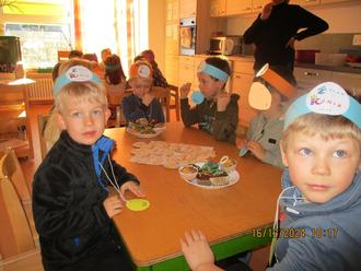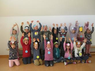 Zum Abschluss feierten wir am Dienstag eine Zahlenparty in der Turnhalle, in der alle zum Zahlenkönig gekürt wurden. Wir spielten verschiedene Zahlen-Bewegungsspiele und sangen das Zahlenlied „1,2,3 ich kann schon was“.