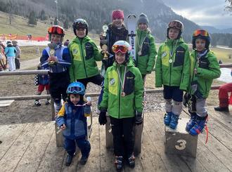 Für die Jahrgänge 2016 – 2013 wurde extra ein eigener, längerer Lauf gesteckt. So konnten auch die größeren Starter noch auf einer guten Piste fahren. Maxi Leicht gewann in der Altersklasse U10 männlich und seine Schwester Amelie wurde 3. bei den U12 weiblich. Mathilda Ritzeler als 2. und Mariella Schmid als 3. standen zusammen bei den U9 weiblich auf dem Podest.