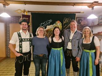 hinten v.l.n.r.: Fähnrich Andreas Angerer, 3. Beisitzer Andreas Führer, 2. Vorstand Matthias Hetz, 1. Beisitzer Lukas Hengge, 2. Beisitzer Thomas Probst, 1. Vorplattler Peter Enderle, 2. Vorplattler Marius Hoffmann, vorne v.l.n.r.: Unterstützung Jugendgruppe Katharina Sigl, Schriftführerin Stefanie Hetz, 1. Vorstand Christine Haslach, Kassierin Katharina Willer, 1. Jugendwart Karina Knoll, Föhlenvertreterin Katja Hengge, 2. Jugendwart Pius Mühlegg