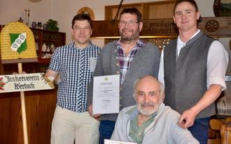 Zur diesjährigen Hauptversammlung des Imkervereins Wertach trafen sich die Mitglieder am 30. März im Schützenhaus. In geselliger Runde blickte Vorstand Tobias Bestle auf ein ereignisreiches Jahr zurück: von Wetterkapriolen und Melezitosehonig über einen Ausflug zur Landesgartenschau bis zum stimmungsvollen Neujahrs-Hoigarte mit Honigwaffeln und Met. Besonders erfreulich: Der geplante Imkerpfad nimmt Gestalt an – dank Leader-Förderung wird er von der Gemeinde voraussichtlich bis Herbst 2025 umgesetzt. Auch die Natur hielt Überraschungen bereit: Ein Waschbär auf Futtersuche sorgte am Bienenstand von Fritz Mattausch für Aufsehen und zum Thema Asiatische Hornisse tauschte man sich über sinnvolle Maßnahmen aus. Für ihre langjährige treue Mitgliedschaft ehrten Tobias Bestle und Thomas Grasberger (2. Vorstand) Hubert Heinisch (25 Jahre) und Hieronymus Gehring (40 Jahre).