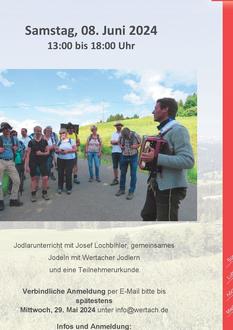 | - | Gemeinsame Jodlarprob mit Wertacher Jodlern inkl.gemeinsamen Auftritt im Freien oder in der Kapelle der Veranstaltungsstätte |