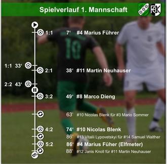 Der eingewechselte Nicolas Blenk und Marius Führer (ebenfalls nach einem schmeichelhaften Foulelfmeter) machten die Tore 4 und 5 zum Endstand.