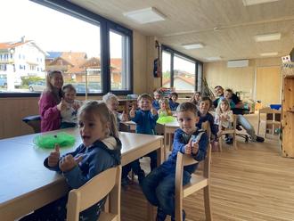 Am 25.04.2023 war es endlich so weit. Die Igelgruppe durfte (nach zweieinhalb Jahren Notgruppe in der Küche) endlich in den Modulbau einziehen. Der Modulbau besteht aus einer Garderobe, dem Gruppenraum, einem Nebenraum und einem kleinen Technikraum. Er ist durch einen Gang mit dem Kindergarten verbunden. Das neue zu Hause der Igelgruppe besteht aus Holzwänden, einem Holzboden und großen Fensterfronten und wurde liebevoll vom Personal der Igelgruppe (Sabrina Zeller, Nils Werner) und der großen Mithilfe des Kita-Teams eingerichtet. Die Igel fühlen sich im Modulbau sehr wohl und haben sich schnell eingelebt. Für unser Haus ist der Modulbau eine große Entlastung und wir sind sehr froh, dass wir die Küche wieder richtig nutzen können.