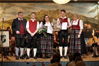 Höhepunkt des Abends waren die Ehrungen für langjährige Mitglieder der Musikkapelle. Michaela Sattelberger und Laurin Knoll, beide auch in der Vorstandschaft tätig, wurden für ihre 15-jährige Mitgliedschaft geehrt.
