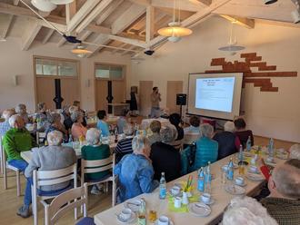 Abschließend griff er noch einen weiteren wichtigen Punkt auf: Bewegung im Alter. Bewegung fördert u.a. den Stoffwechsel, verbessert den Schlaf und stärkt natürlich auch das Herz-Kreislauf-System. Als kleine Anregung für die Anwesenden stellte er kurz fünf kleine Übungen vor, die leicht in den Alltag eingebaut werden können.