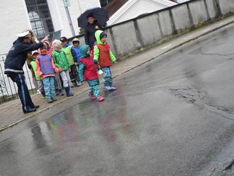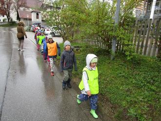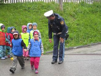 Während eines Spaziergangs durchs Dorf haben die Kinder gelernt, wie sie eine Straße sicher überqueren und Gefahrenstellen erkennen können.