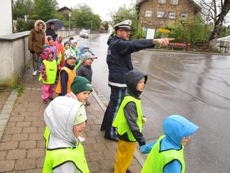Am Freitag, den 03.05.24 bekamen unsere Vorschulkinder Besuch von der Polizei, um gemeinsam den Schulweg zu üben.