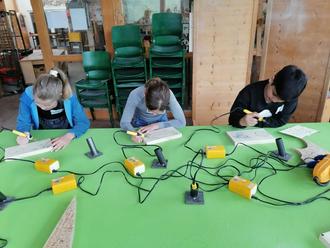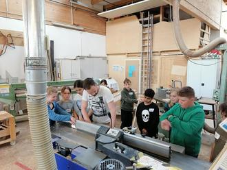 Am Dienstag, 07.05.24 fuhren die Kinder der 4. Klasse mit dem Zug nach Kempten ins Kempodium. Um kurz vor 8 Uhr traf man sich bereits in Oy-Mittelberg am Bahnhof. Nach einer aufregenden Bahnfahrt liefen wir noch etwa 15 Minuten, bevor wir schließlich am Kempodium ankamen. Dort erwarteten uns spannende Projekte. In der Holzwerkstatt fertigten die Schüler ihr eigenes Brotzeitbrett an und erhielten dabei einen Überblick über heimische Hölzer und deren Besonderheiten. In der Kochwerkstatt bereiteten die Kinder ein 3-Sterne-Power-Frühstück zu und stellten Pizzaschnecken und Obstspieße her. Alle Snacks, die übrig blieben, wurden eingepackt und schließlich auf der Heimfahrt genüsslich verzehrt.