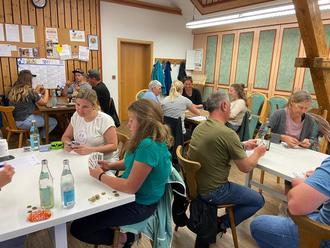 Am Ende des Kurses fand ein kleines Turnier statt, wo alle stolz ihr neu erlerntes Können unter Beweis stellten. Einige waren vom Schafkopfen so angetan, dass sie bis spät in die Nacht weiter gespielt haben.