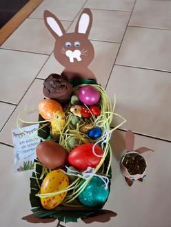 Bei unserem Ausflug mit dem Linienbus nach Oy und der Wanderung zurück nach Wertach haben wir einige süße Spuren des Osterhasen auf den verschiedenen Spielplätzen gefunden. Was für eine Riesen-Oster-Freude für alle! Zum Abschluss des Wandertages haben wir uns dann noch mit einem Eis stärken können. Es gab noch eine Schulhaus-Rallye, eine Kino-Stunde mit dem Sams, einen Bauernhof-Besuch und vieles mehr.