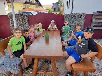 Die Kinder besuchten als Belohnung bei herrlichem Sommerwetter das Dorfgespräch, wo sie sich ihr Lieblings-Eis aussuchen und dieses im Biergarten genießen durften.