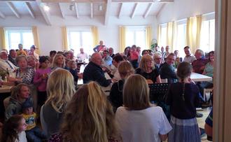 Das Wetter spielte zunächst nicht so ganz mit beim Pfarrfest zum Patrozinium am vergangenen Sonntag und so mussten die Feierlichkeiten nach drinnen verlagert werden. Im Pfarrheim herrschte deshalb nach dem Gottesdienst ein buntes Treiben: Jung und Alt waren gekommen, um sich den vom Pfarrgemeinderat kreierten „Marktfladen“ oder Braten schmecken zu lassen und sich an den selbst gebackenen köstlichen Kuchen und Torten zu erfreuen. Für beste Unterhaltung sorgten der Kinderchor und die Jodler. Das Thema „600 Jahre Marktrecht in Wertach“ fand ebenfalls seinen Niederschlag beim Pfarrfest: Nicht nur bei den Quizfra