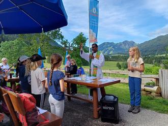 Am 26. Juni 24 feierten die Kinder, ihre Lehrer, viele Eltern und Großeltern mit Pater Josef die Heilige Messe auf der Alpe Sorg II.