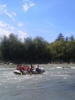 Über zunächst ruhiges Wasser paddelte man in herrlichem Sonnenschein bei sommerlichen Temperaturen gemächlich mit der Strömung und vertrieb sich die Zeit mit wilden Wasserschlachten. Auch ein paar Stromschnellen mussten beherzt überwunden werden, bis schließlich alle an der Kiesbank beim Wasserskilift zu einer Pause anlegten.