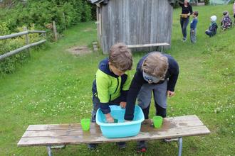 Zuerst konnten sich alle Kinder mit Wienerlesemmel stärken um dann im Sandkasten auf Diamanten – Schatzsuche zu gehen. Wer seinen Schatz ausgegraben hatte, durfte sich beim Dosenwerfen, Schwammdrücken oder beim Spielen mit dem großen Schwungtuch versuchen. Das klassische Kinderschminken, ob passend zur EM oder auch als Einhorn, wurde natürlich auch angeboten. Nach so viel Spiel und Spaß gab es zum Nachtisch noch ein leckeres Eis.
