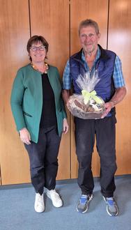In einer kleinen Feierstunde am 09.07.2025 im Rathaus bedankte sich Wertachs Bürgermeisterin Gertrud Knoll im Namen des Marktes Wertach bei Gerhard Rief mit einem Geschenkkorb der Gemeinde. Gerhard Rief übte seit dem 05.11.2025 für den Markt Wertach das Amt des Feldgeschworenen sehr gewissenhaft aus.