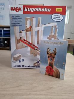 In der Woche vor Weihnachten klopfte es an der Bürotür des Kindergarten St. Ulrich in Wertach. Ein Weihnachtsengel stand mit einem großen Geschenk in der Tür und erzählte, dass die Firma „Gebhart Auto & Landtechnik“ ein Geschenk für unsere Kindergartenkinder hat. Mit voller Freude öffneten wir es und eine neue, große Kugelbahn kam zum Vorschein. Wir sind begeistert!