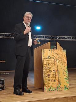 Obwohl das Besucherinteresse an der Veranstaltung verhalten war, konnten aufgrund der lustigen und engagierten Moderation des für diesen Abend gebuchten Auktionators Marcus Graf bis auf drei Bilder alle anderen zu beachtlichen Preisen versteigert werden. Herzlichen Dank an das erlesene Publikum, das bei der Versteigerung von sechs Bildern über 400,- € einspielte. Die drei Bilder, die an diesem Abend den Besitzer noch nicht wechseln konnten, werden im Laufe dieses Jahres voraussichtlich bei einer Gelegenheit in der Grundschule Wertach versteigert.