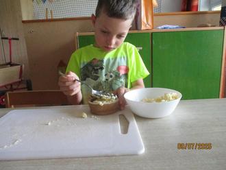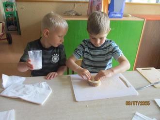 Jedes Kind konnte sich mit einem Butterförmchen selbst eine Butter für zu Hause machen. Während der Wartezeit tranken einige Kinder die Molke, die übrig war.