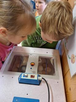 Mit viel Neugier und Verantwortungsbewusstsein kümmerten sich die Kinder täglich um das Brutgerät. Gemeinsam wurde gelüftet, kontrolliert und gepflegt, Wasser nachgefüllt – und natürlich gezählt, wie viele Tage noch bis zum Schlüpfen fehlen.
