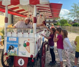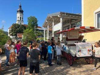 Am 17. Juli 23 stand für die Schüler der Grundschule Wertach auf dem Pausenhof eine besondere Überraschung bereit. Als Belohnung für die Aktion „zu Fuß zur Schule“ konnte sich jedes Kind eine Eistüte mit seinem Lieblingseis an dem Eiswagen holen.