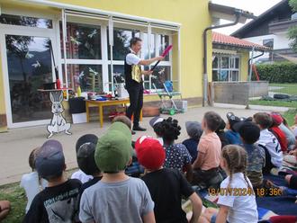 Beim gemeinsamen Würstchen und Marshmallow grillen konnten die Kinder noch schöne letzte Stunden im Kindergarten verbringen. Viele Highlights folgten: Der Besuch von „Zauberer Martin“, ein „Tattoo Studio“ mit Glitzer-Tattoos, Tauziehen und zum besonderen Abschluss eine Fackelwanderung. Insgesamt war es ein sehr gelungener Abend!