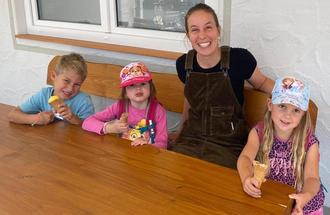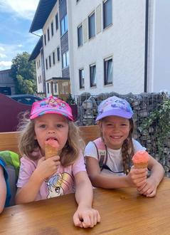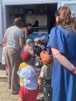 Zum Abschluss der Aktion wurden alle Kindergartengruppen mit einer Kugel Eis belohnt. Gemeinsam liefen die Kinder zum Dorfgespräch zu Verena Gehring, die eigens für die kleinen Gäste öffnete und sich Zeit für sie nahm.