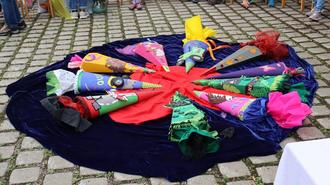 Die Schultüten werden stolz im Kreis herumgetragen und gezeigt.