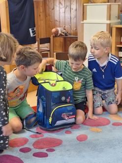 Jedes Vorschulkind hat heute seinen Schulranzen dabei und zeigt diesen ganz stolz.