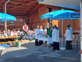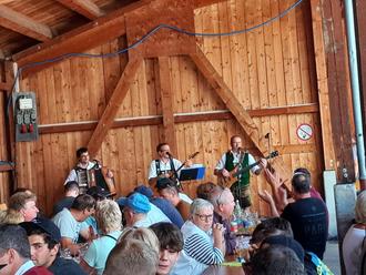 Nach einer zweijährigen, coronabedingten Pause konnte am 20. und 21.08.2022 wieder das traditionelle Weinfest der Musikkapelle und des Fördervereins im Wertstoffhof stattfinden. Am Samstagabend sorgte die Band „Late Night Club“ trotz regnerischem Wetter für gute Stimmung bei den Partygästen. Am Sonntag meinte es das Wetter dann besser. Bei strahlendem Sonnenschein begann der Tag mit einem gut besuchten Gottesdienst im Wertstoffhof, musikalisch umrahmt von der Musikkapelle Mittelberg-Faistenoy. Sie sorgte auch beim Frühschoppen für gute Stimmung. Nachmittags spielte bis zum Festende das Trio „Alpenspitzbuebe“. In vielen Haushalten blieb die Küche kalt, weil ein breites Angebot an Speisen und Getränken keine Wünsche offen ließ. Das galt auch für die große Auswahl an Kuchen. Die Kinder hatten in der Bastelecke und mit den Fahrzeugen vom Spielmobil großen Spaß. Beim diesjährigen Schätzspiel, bei dem die Glieder einer Trachtenkette geschätzt werden mussten , gewann Mike Conway den 1. Preis (12 Flaschen Wein), den 2. Platz belegte eine Gruppe aus der Schweiz (6 Flaschen Wein) und den 3. Platz belege Toni Riedmiller (3 Flaschen Wein). Insgesamt war das Fest wieder ein voller Erfolg.