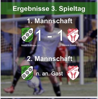 Bereits früh gingen die Gäste in Führung, Martin Suntheim glich noch vor der Pause aus (4. Saisontor). Der SSV mit einer Vielzahl von Großchancen, welche allesamt liegen gelassen wurden. Da kein Treffer mehr fallen wollte, blieb es beim 1:1 und der SSV ist somit auch im 3. Saisonspiel ohne Niederlage. Dies hätte man vor der Saison höchstwahrscheinlich ohne Weiteres unterschrieben.