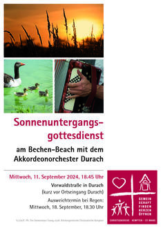 | 18.45 Uhr | Sonnenuntergangsgottesdienst, Bechen-Beach |