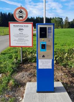 Seit kurzem ist am Wanderparkplatz „Großer Wald“ am „Königssträßle“ ein Mautscheinautomat für die Alpwege Schnitzlertal und Köllealpe installiert. Dieser Automat ist nur für Kartenzahlung und nicht für Zahlung mit Bargeld eingerichtet. Die Karte muss für kontaktloses Bezahlen freigeschalten sein.