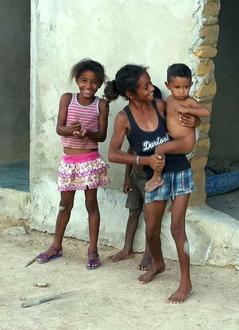 Diese Kinder freuen sich über die neue solide Hütte, die ihre Familie mit Unterstützung der Missionare bauen kann.