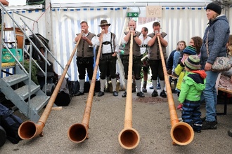 Am Scheidplatz spielten abwechselnd die Harmoniemusik Oy und die Alphornbläser Maria Rain.