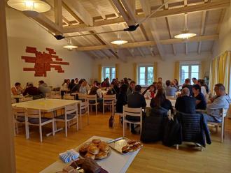 Alle Eltern der insgesamt 34 Erstklässler wurden nach dem offiziellen Teil der Einschulung zu einem gemütlichen Frühstück im Pfarrheim eingeladen. Gegen einen kleinen Unkostenbeitrag gab es belegte Semmeln und Getränke, Kaffee und Kuchen. Dies wurde bereits in den letzten Jahren gerade für neue Schuleltern immer wieder gerne als Gelegenheit für ein erstes Kennenlernen wahrgenommen und verkürzte die Wartezeit bis zur Abholung der Schulkinder.