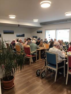 In den Seniorenpark Linzenleiten waren die Wertacher Senioren, die Bewohner des Hauses und die Gäste der Tagespflege zum Herbstfest eingeladen. Bis auf den letzten Platz, ja sogar Mobiliar von der Terrasse wurde dazugestellt, war der Begegnungsraum besetzt.