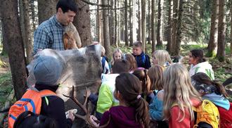 Ganz aufgeregt waren die Drittklässler am Mittwoch den 19.10.22. Denn ein spannender Ausflug stand an. Gemeinsam mit dem Jäger Stefan Pfefferle gingen die Schüler in den Wald. Sie lernten, wie man Bäume unterscheiden kann, was der Wald zum Wachsen braucht und welche Funktionen dieser hat. Zum Thema Tiere des Waldes durften die Schüler im Wald selbst auf die „Pirsch“ gehen. Denn im Wald hatte der Jäger viele Anschauungsmaterialien versteckt. Auch sein Beruf stellte er vor. Herr Pfefferle zeigte uns, was er alles für die Jagd benötigt, und sein Hund demonstrierte uns sein Können. Alles in allem ein rundum gelungener Tag mit ganz vielen neuen Eindrücken!