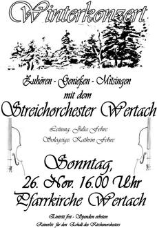 Ein Konzert nicht nur fürs Zuhören, sondern auch zum Mitsingen bietet das Streichorchester Wertach am Sonntag, dem 26. November um 16.00 Uhr in der Pfarrkirche zu Wertach.
